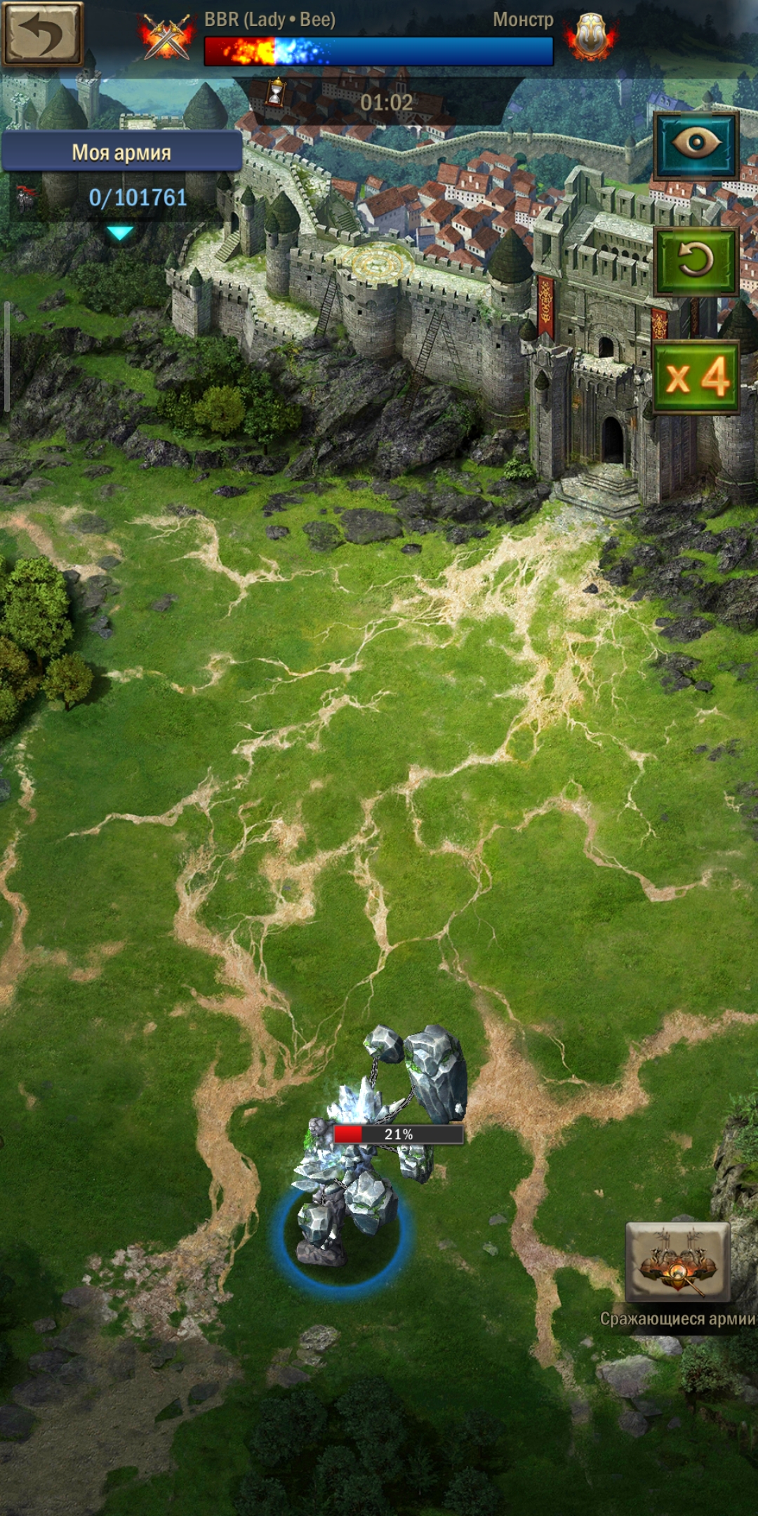 - фиксируем для себя сколько процентов здоровья осталось у монстра после битвы. Если больше 15%, то вернитесь к пункту подготовка к мобу. Если меньше 15%, то можно побывать скорректировать расстановку армии.
