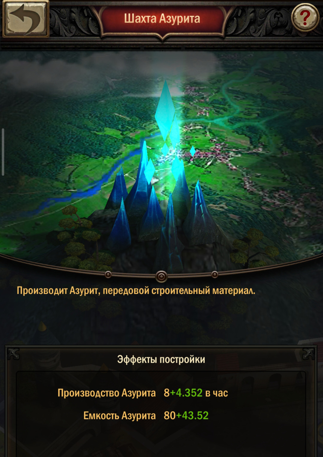 - Азурит — это ресурс, добываемый в одной единственной шахте внутри вашего города.