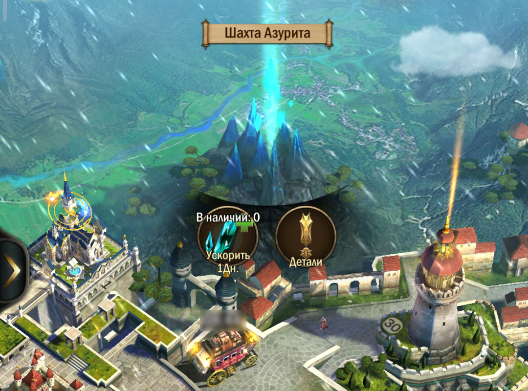 Как только вы запустили стройку замка с30 — копите ресурсы на шахту азурита. Не на Место построения и даже не на Казарму… Шахта Азурита — это то, что должно быть построено в первую очередь на с30. Чтобы она уже сразу начала копить Азурит, пока вы будете строить всё остальное.