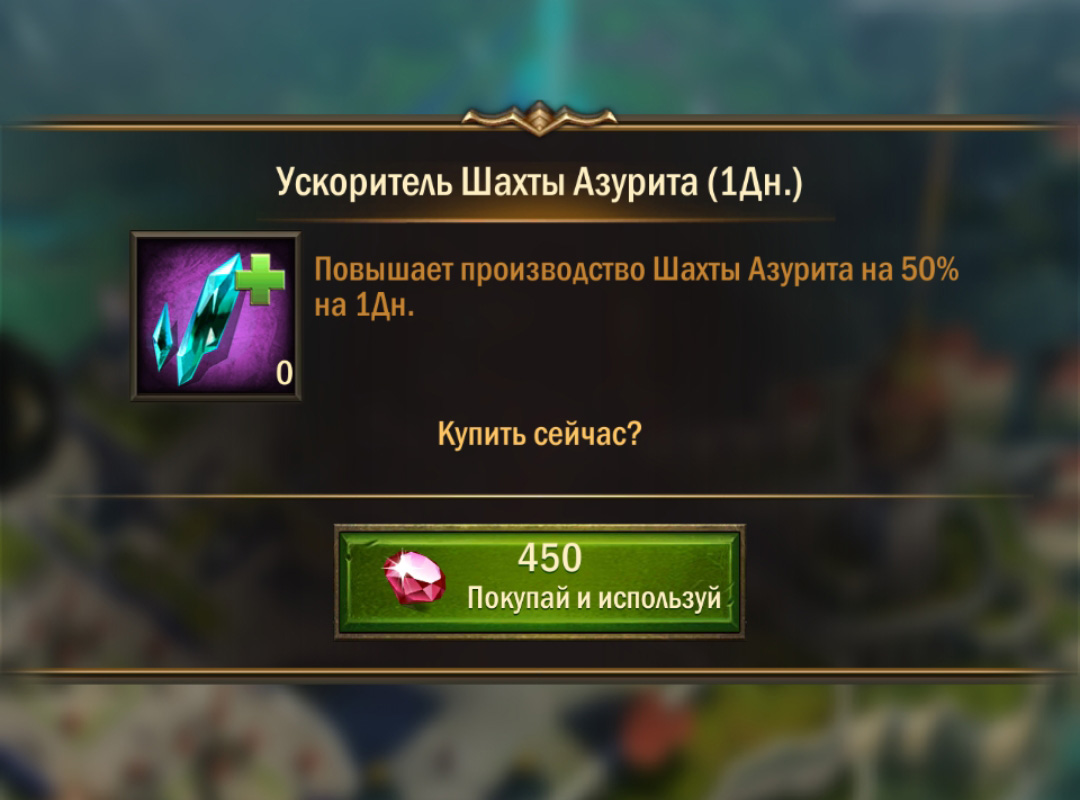 - Элемент Ускоритель Азурита. Ускоряет не в 2 раза, как у других ресурсов, а всего на 50%. Это +4 азурита в час, или 96 штук в сутки. Цена за них — 450 алмазов. Это очень дёшево, если сравнивать с другими возможными способами покупки.