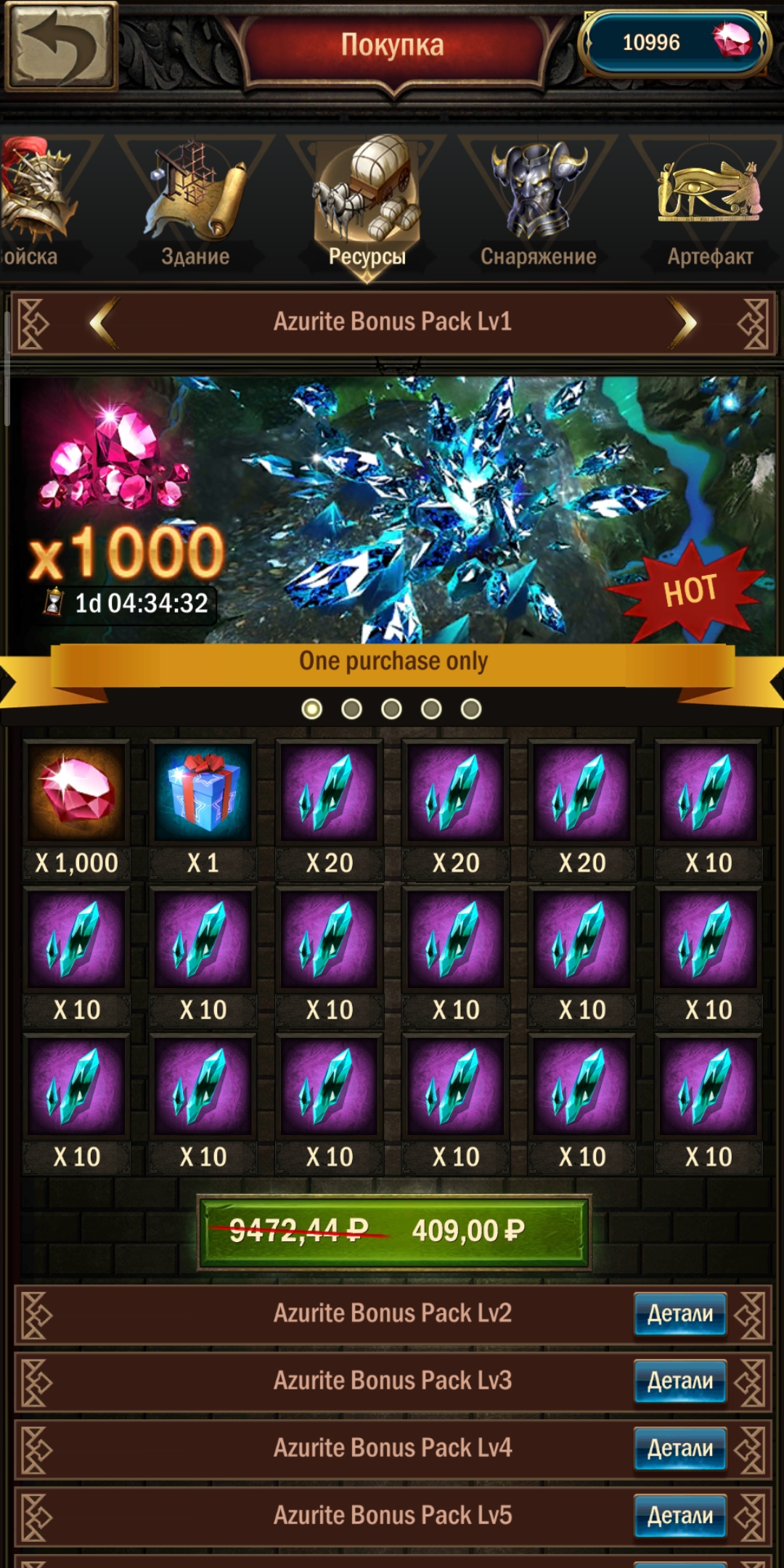 - Донат. Пакеты за реальные деньги. Цена весьма фантастическая $5 за 190 азуритов. Причём на каждом уровне пакетов единица азурита выходит всё дороже и дороже.