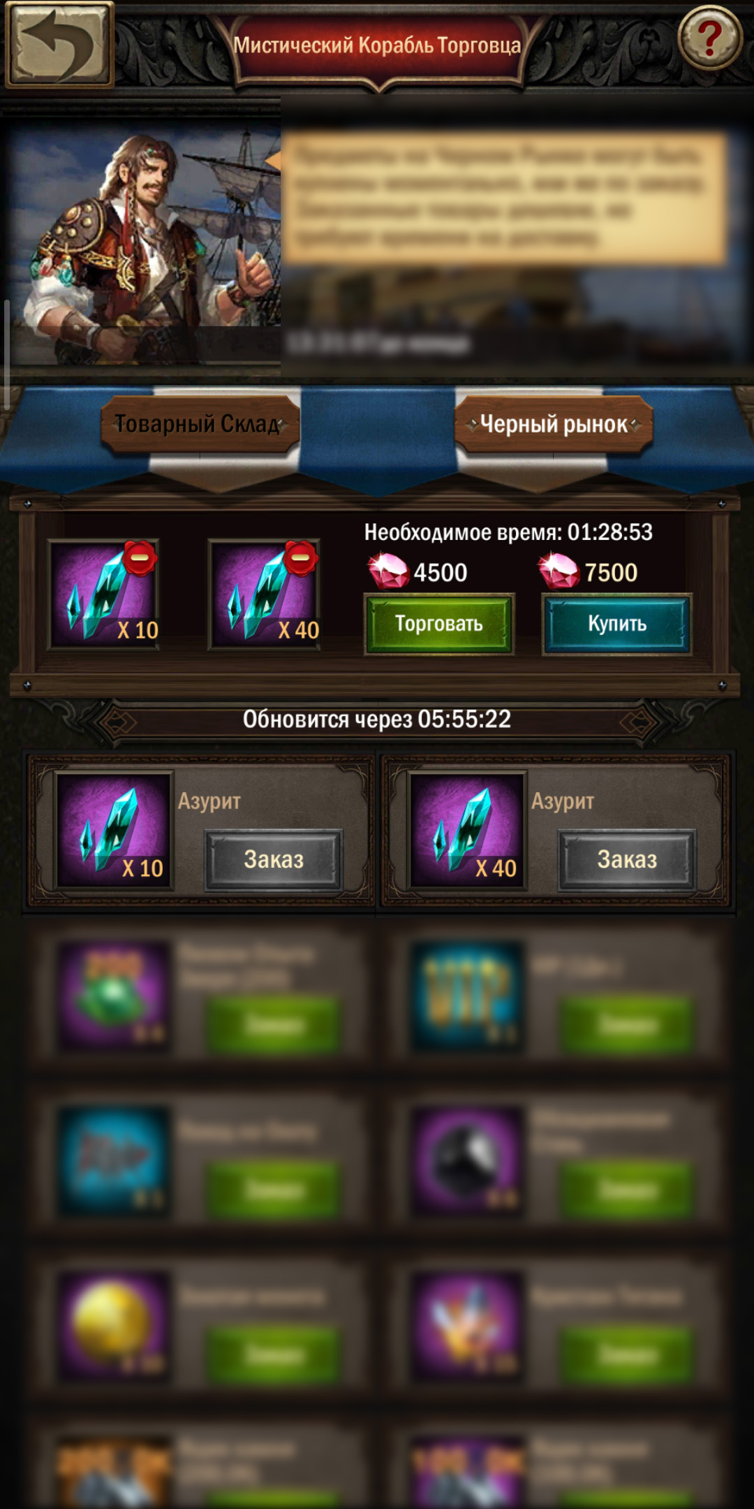 - На мистическом корабле. За какие-то нереальные тысячи алмазов вы можете купить горсть азурита у Пирата — 50 шт за 4500 алика. И то, если попадётся. Дорого, очень редко… и вообще не факт.