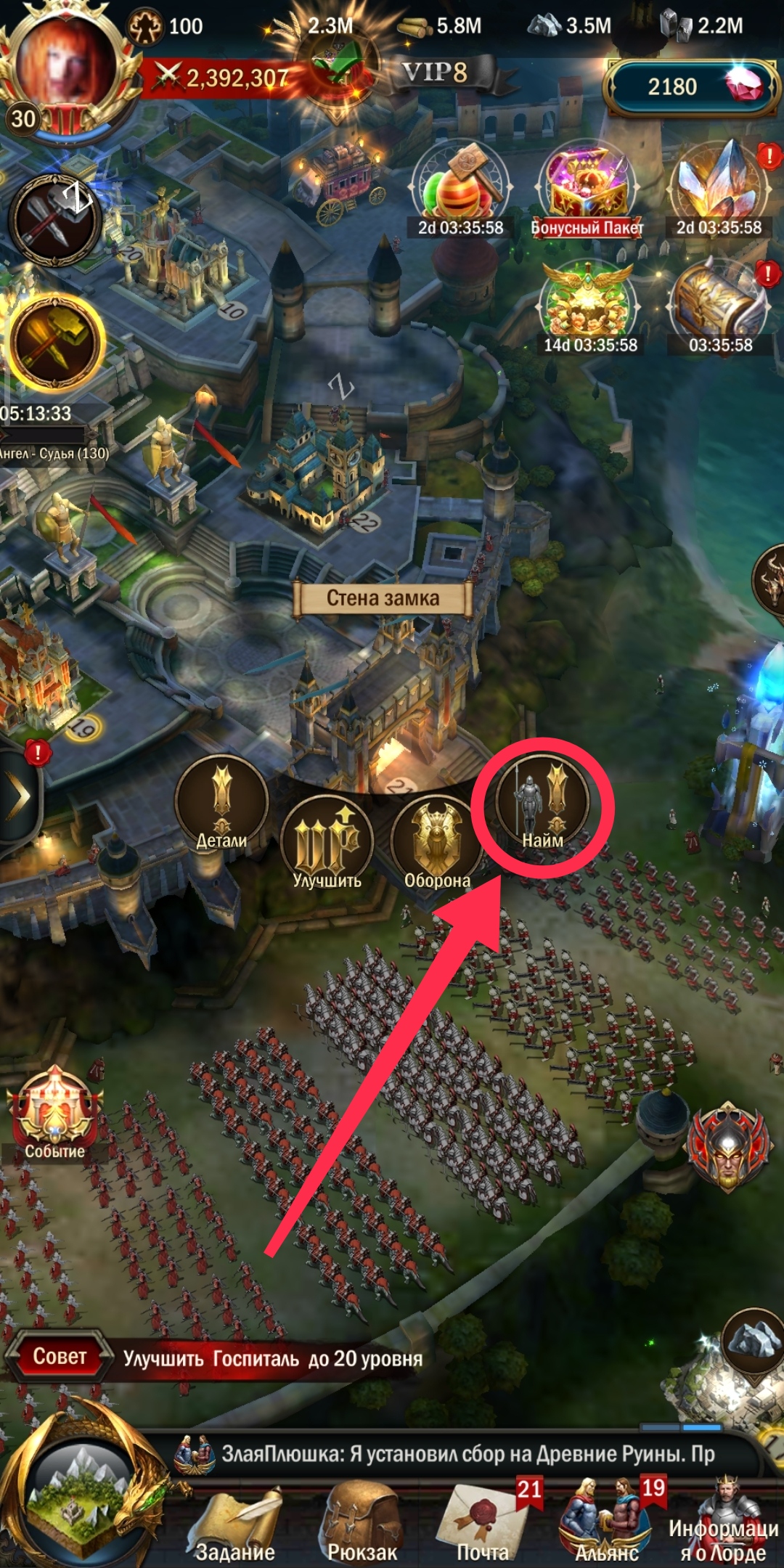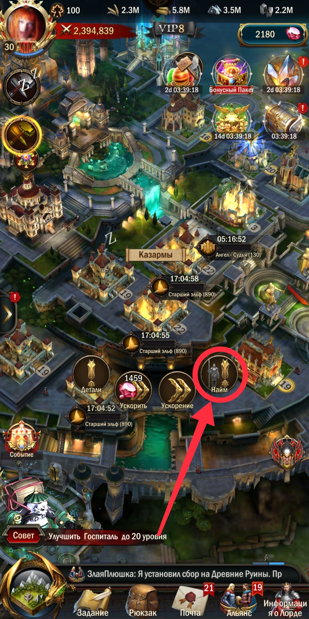 • Заходите в любую казарму через кнопку «найм». Даже если она сейчас занята наймом.