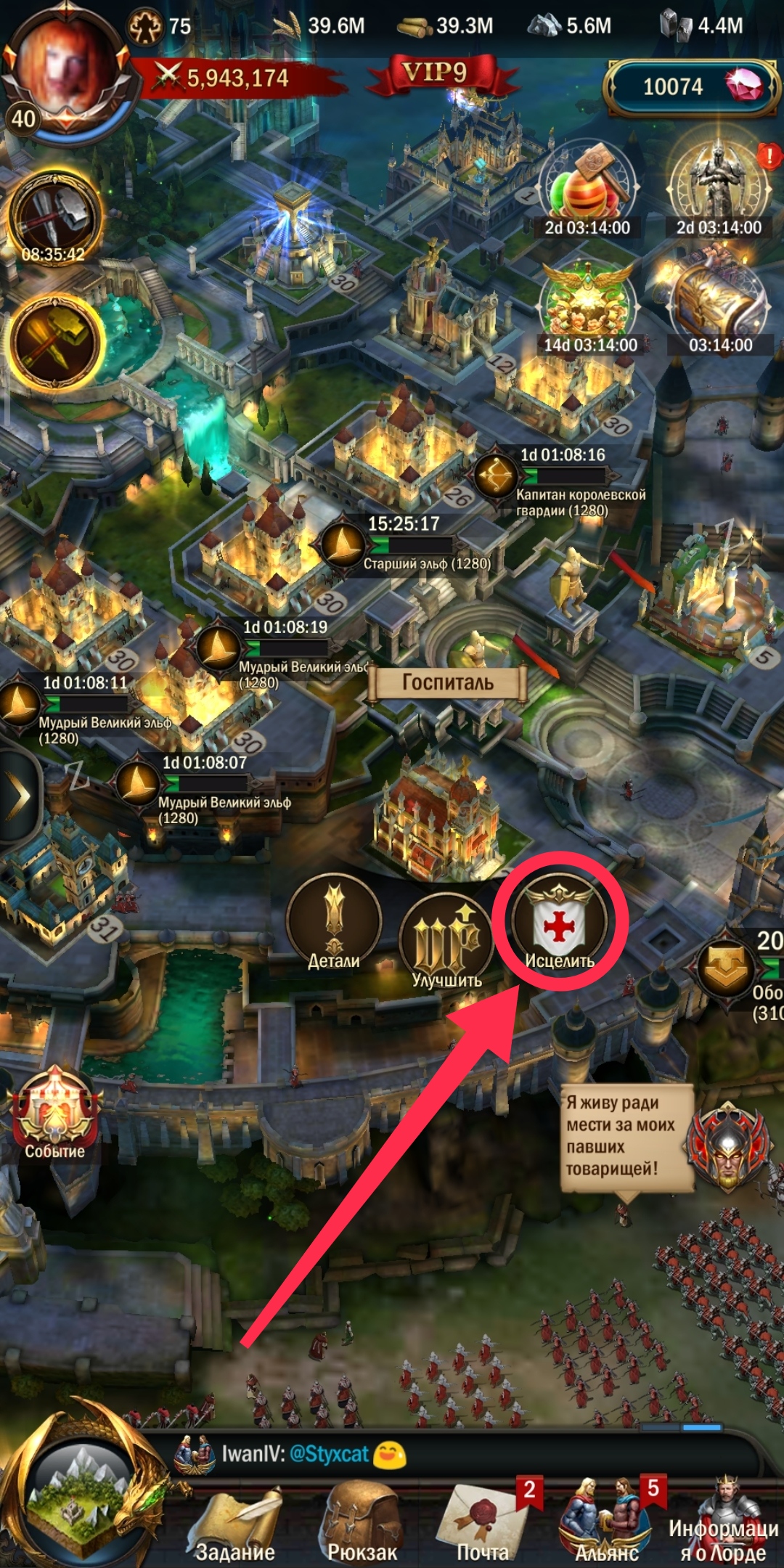 • Зайдите в госпиталь. Только когда он не производит лечение!
