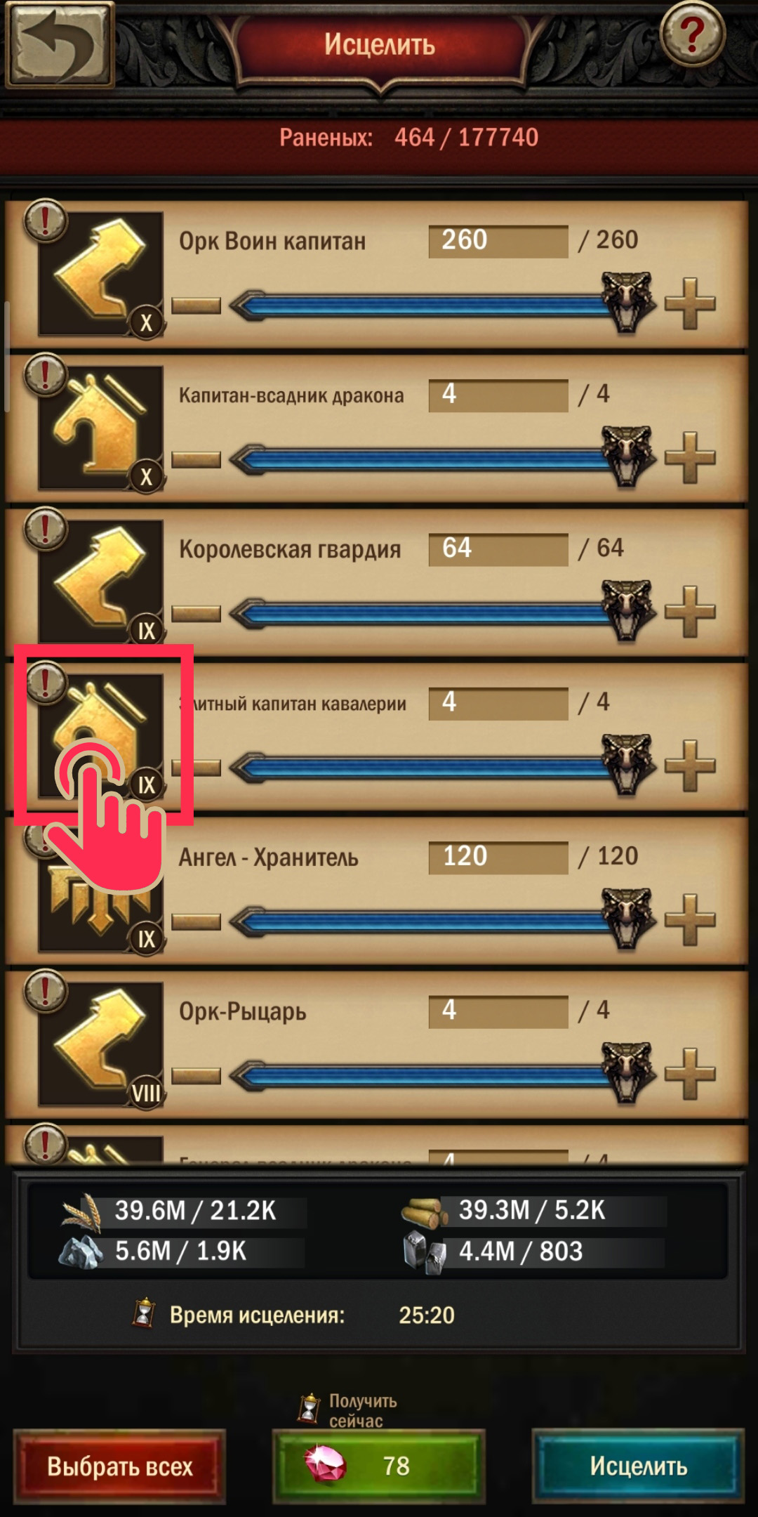 • В верхнем левом углу находите цифру-количество этих войск со значком «минус». Нажимаете.