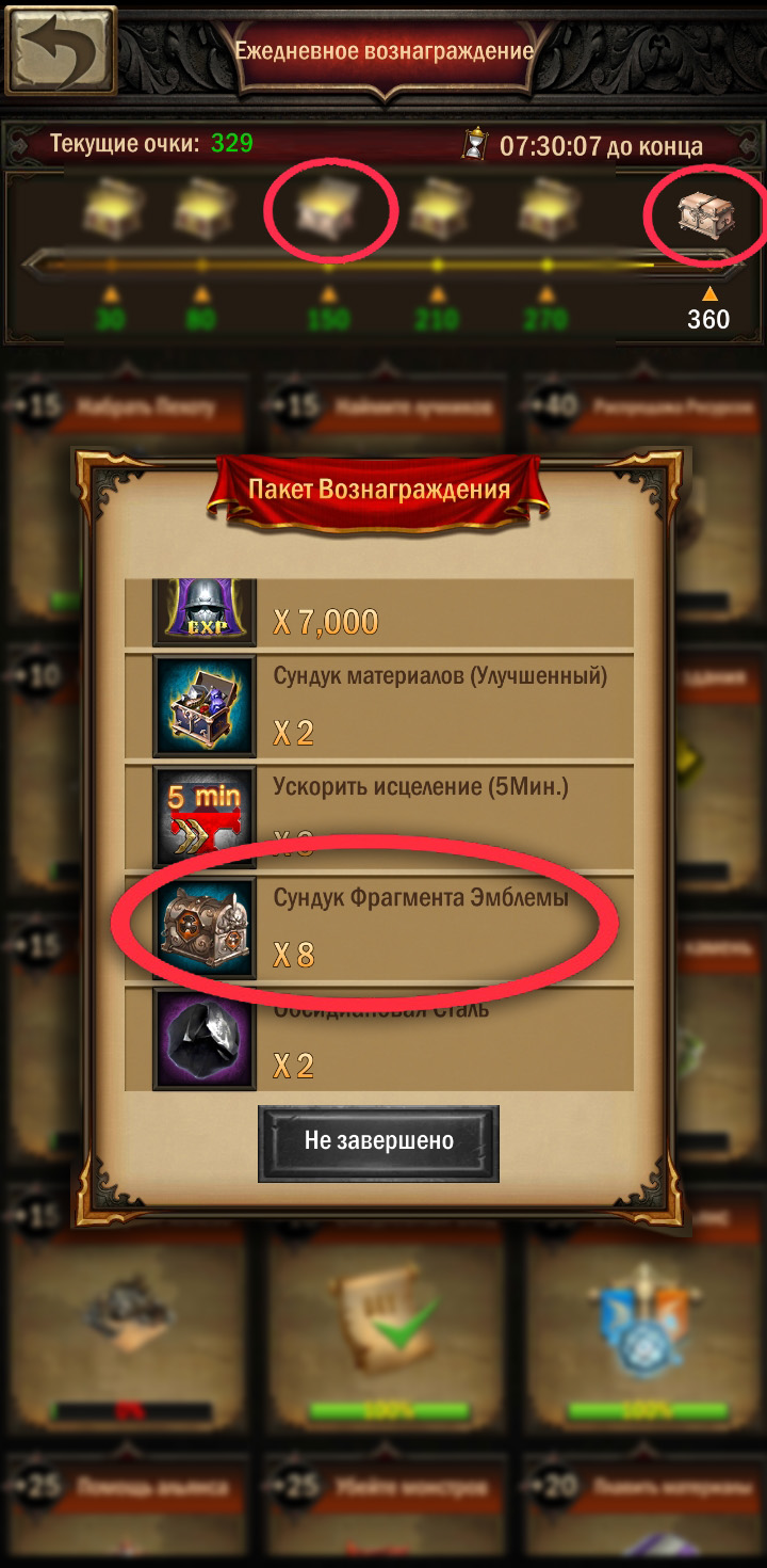 - Есть еще сундуки фрагментов эмблем, из них выпадают фрагменты. Они попадаются при выполнении ежедневного квеста в Ратуше — в третьем и шестом сундуках!