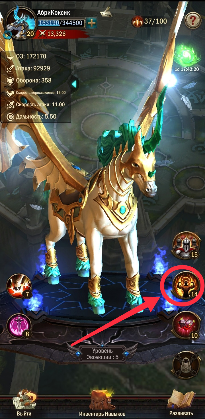 - Пассивный навык Зверя. Я имею в виду «Эксперт Атаки». Не стоит так же забывать, что если ваш Зверь — Пегас, то он сам по себе вторым активным навыком увеличивает силу атаки. Но тогда, его надо брать его с собой в атаку.